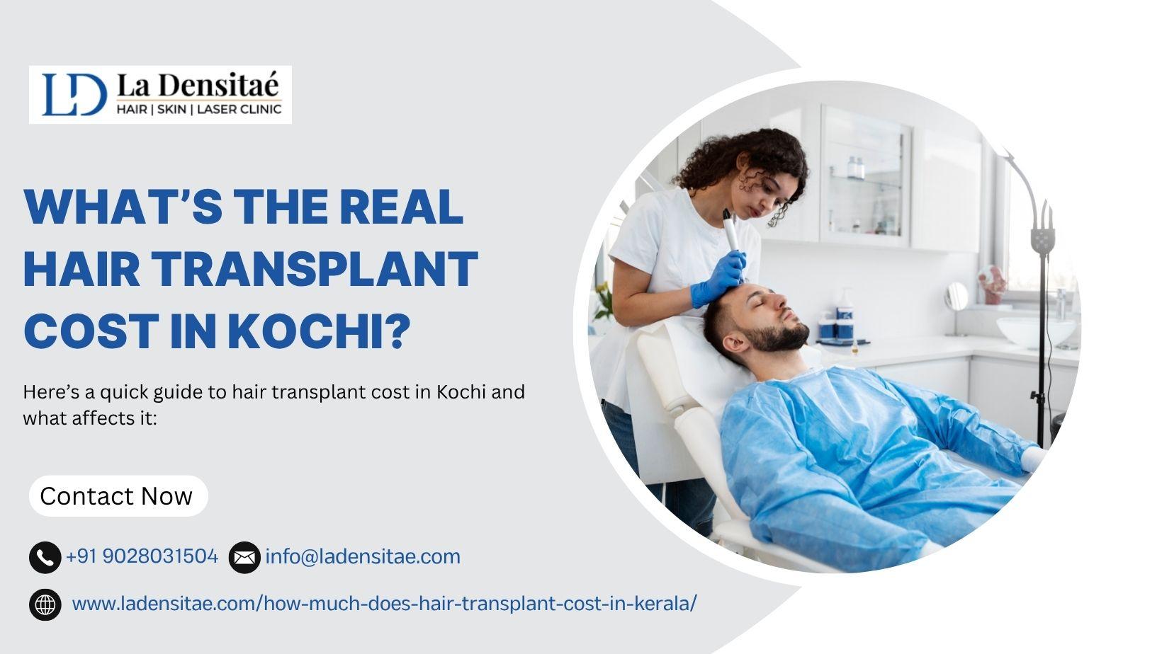 Thinking about a hair transplant in Kochi but unsure about the real cost? At La Densitae, we offer transparent pricing and expert care. The hair transplant cost in Kochi typically ranges from ₹30,000 to ₹1,20,000, depending on grafts, technique, and surgeon expertise. Whether you choose FUE, FUT, or advanced methods, our specialists ensure natural and lasting results.